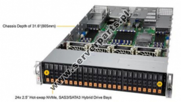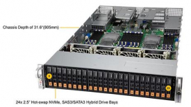 4. Up to 24 Hot-swap 2.5" NVMe/SAS3/SATA3 drive bays (Default with 8 SAS3/SATA3 drive bays); Onboard 2x M.2 SATA.